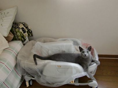 今のうちはビニールを掛けた状態にして、霧吹きを使って「ここは乗っちゃダメ」のトレーニング中です。まだまだ興味はあるものの、日に日に「ここに乗ると怒られる」と分かってきた様子。譲ってくれてありがとう