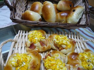 そしてもはや定番化した「ソーセージパン」2個・「チョコチップパン」2個 普通のプレーンなロールパン3個