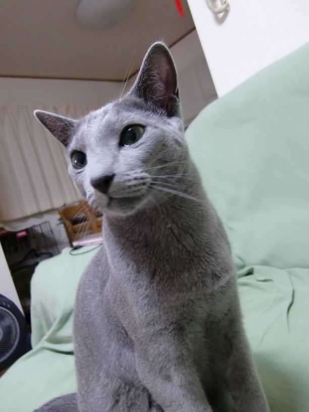 そもそもロシアンブルーは室内猫としてデザインされている品種らしく、内弁慶でビビリな性質ゆえ一旦勢いで外に出るとパニクって帰り道がわかんなくなっちゃったりするそうな。 Smokeyも今まで一度もお外に出した事がないのはもちろんですが、出す気も無かったので首輪や迷子札も一切着けてないし。(←すごく嫌がるから)駐車場に置いてある物置の近くでウロウロしてたみたいです。 その少し前私が物置を片付けてるのを窓からずーっと見てたので、気になって来ちゃったのかも
